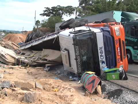 Um acidente próximo a ponte de cabeçuda deixou o trânsito parado na BR-101 em Laguna. Uma carreta tombou na pista, duas pessoas ficaram feridas